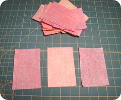 - Peel off the paper and slice the rectangle into little pieces. (Tip: I used my rotary cutter and did them one by one with the fusible side up).