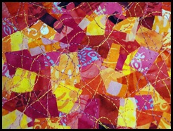 - Using a decorative thread, stitch the fused pieces down using random swirling stitch lines.